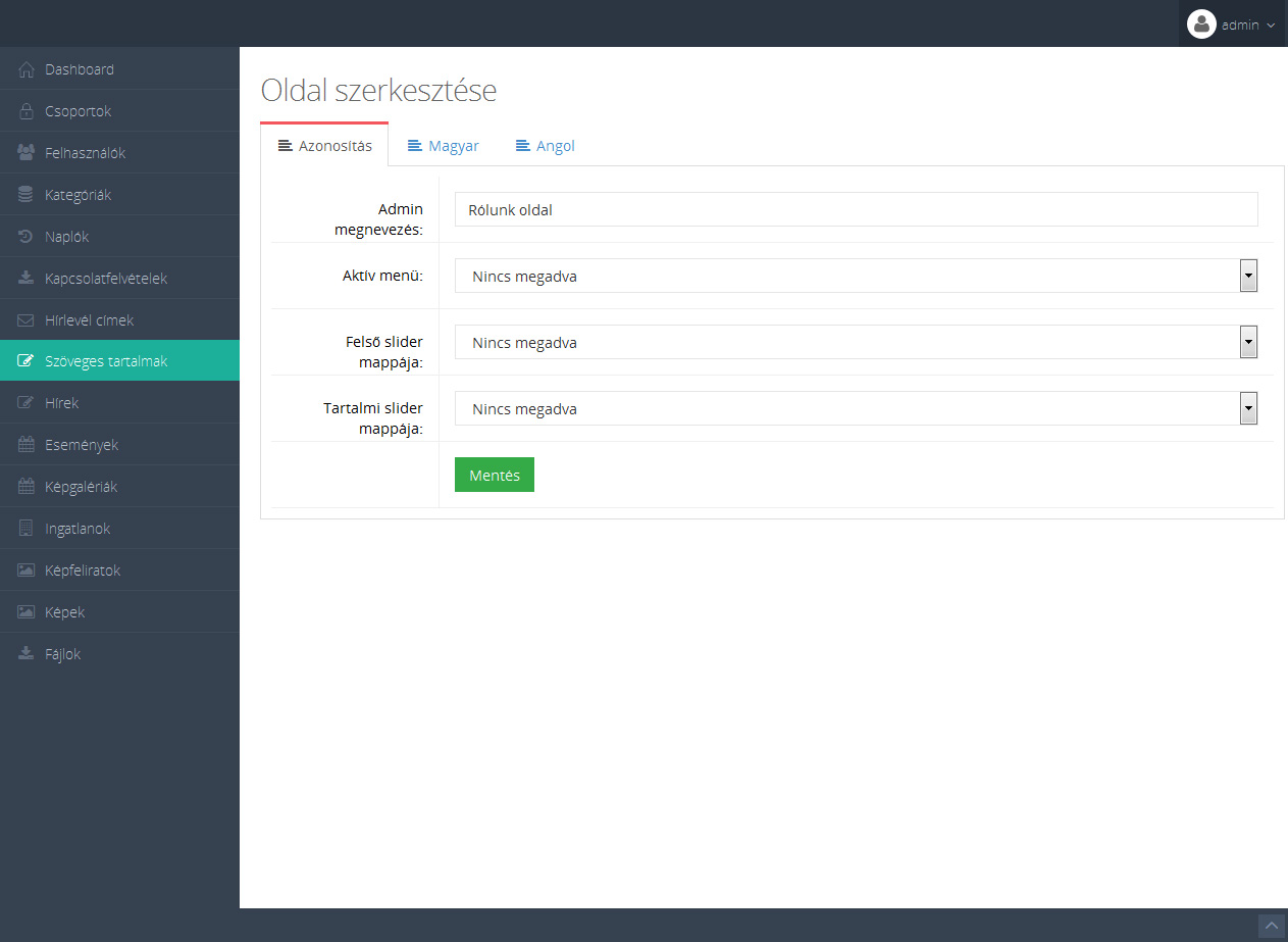 A tartalomkezelő rendszerek (CMS: Content Management System) célja, hogy weboldalunk tartalmát magunk tudjuk kezelni programozói tudás hiányában is. Az tartalmakat (hírek, szöveges oldalak, képek) egy egyszerű adminisztrációsfelületen rögzítheti a felhasználó.